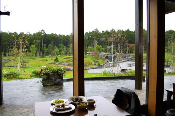 大きなガラス窓 での 優雅なランチ が終わって 園内散策
