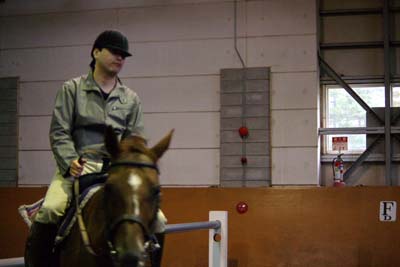 雨だったので、室内での 乗馬体験。