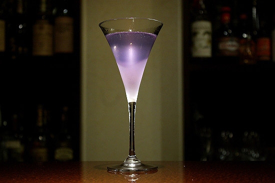 ブルー と 言っていますが、実際は 薄紫 のカクテルです。