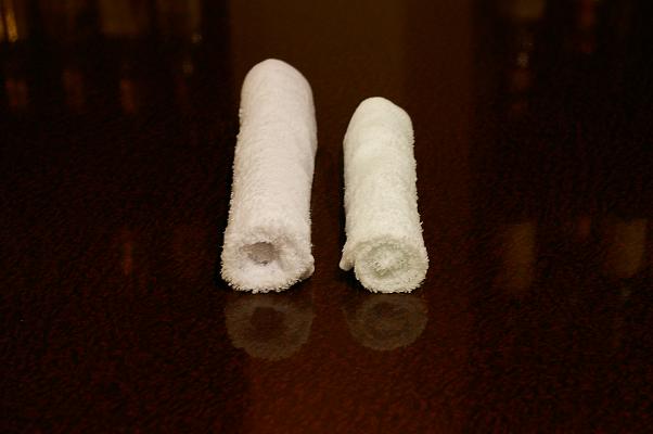やっぱり、大きいお絞りのほうがふかふかして気持ちいいですからね。