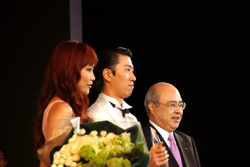 プレゼンターは 佐藤エリコ氏。 右は サントリー副社長。